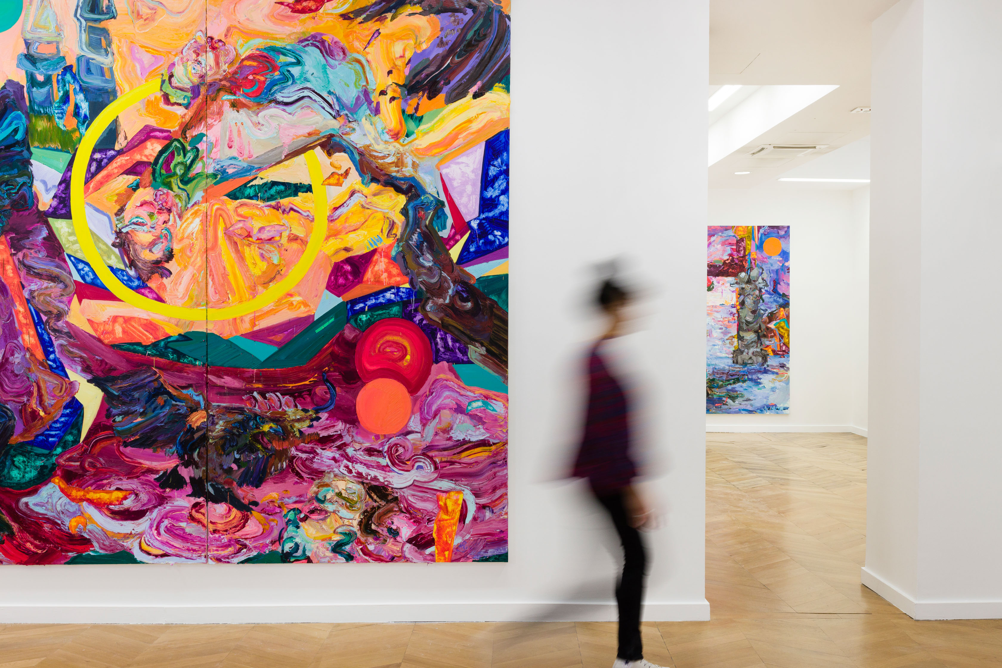 Des ronds colorés s’échappent des peintures de Miryam Haddad… Parents et enfants sont invités à se balader dans l’exposition pour suivre ces mystérieux ronds.