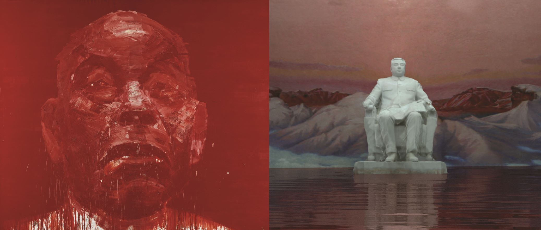 Conçu à partir de prises de vues réelles et de composition 3D, le film The Reflection of Power de Mihai Grecu met à mal les images de propagande du régime nord-coréen. A l’aide d’une esthétique postapocalyptique, statues de dirigeants et architectures démesurées sont englouties sous une inexorable montée des eaux, à la fois destructrice et purificatrice. Dans cette dystopie, la puissance du régime de Kim Jong-un appartient désormais au passé et se livre comme un contrepoint aux œuvres de Yan Pei-Ming et son portrait monumental de Mao ou à celles de Şerban Savu et de Vincent J.Stoker qui font remonter à la surface de leurs œuvres le souvenir d’autres régimes totalitaires qui ont usé de la même force visuelle pour asseoir leur pouvoir.